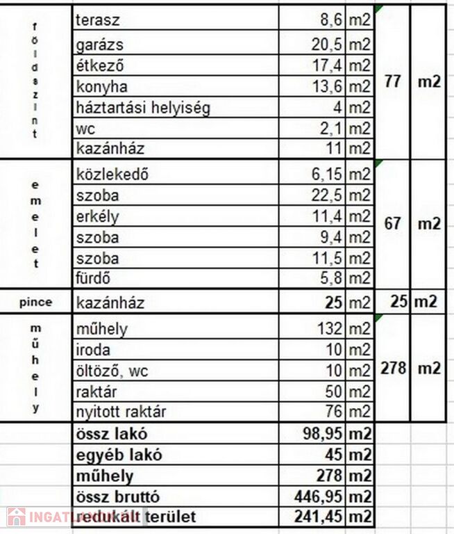 A műhely belmagassága 285 cm, a lakóháztól független fűtéssel rendelkezik.