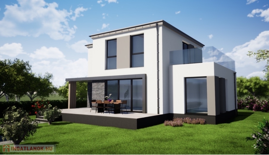 Győr-Ménfőcsanakon győri panorámával rendelkező 776 m2-es telken, kialakult lakókörnyezetben, nettó 136 bruttó 228 m2-es, 3 szoba + nappalis, 2 fürdőszobás, kiváló alaprajzi elrendezésű, modern stílusú családi ház nagy méretű tetőteraszokkal, pincével fűtéskész állapotban eladó.