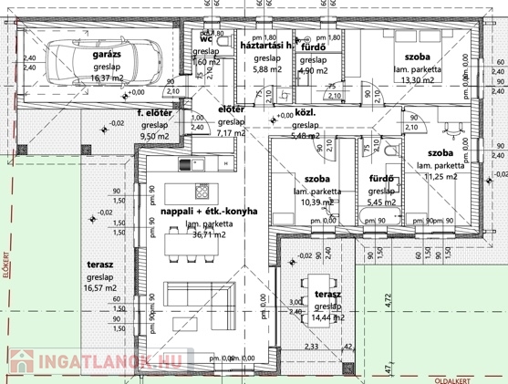 Győrújbarát csendes, zöldövezeti részén, mégis a központhoz közel, 922 m²-es telekre épülő, 118,5 m² hasznos alapterülettel, 3 szoba + tágas nappali kialakítással, két fürdőszobával, valamint 14,44 és 16,57 m²-es terasszal és 16,37 m²-es garázzsal rendelkező, prémium minőségű, ÚJ ÉPÍTÉSŰ családi ház eladó.