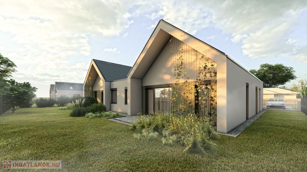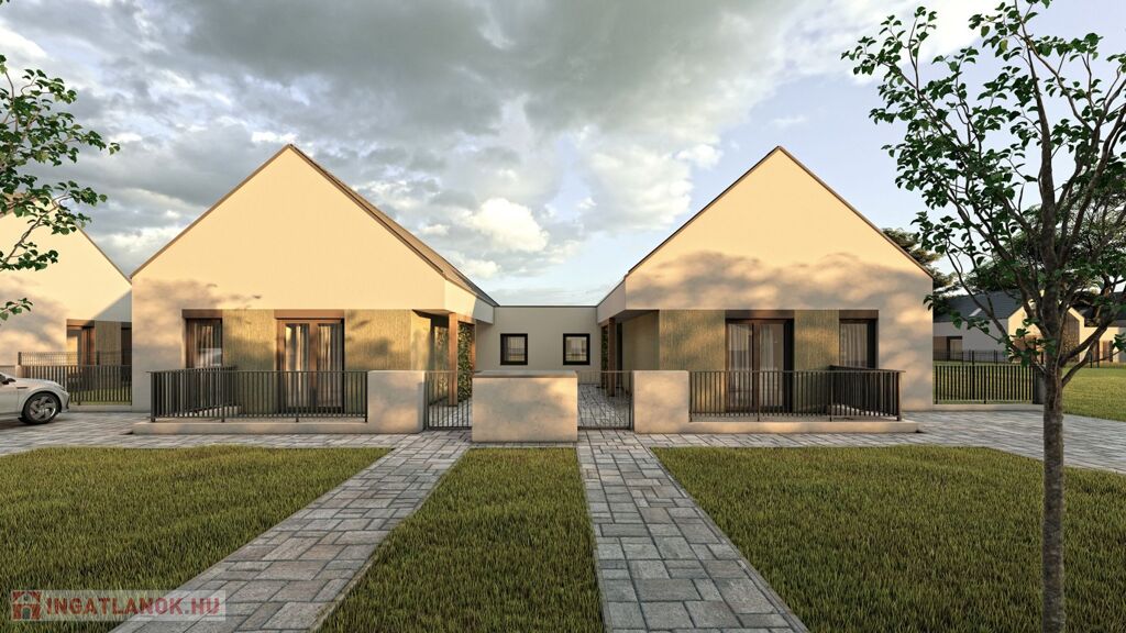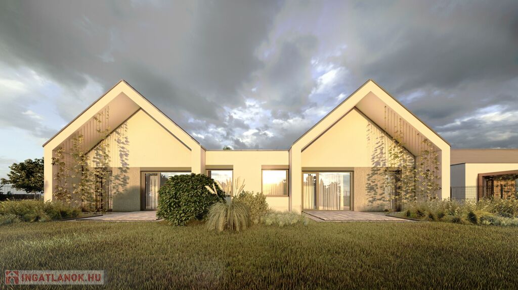 Mosonmagyaróváron a Duna Lakóparkban, ÚJ ÉPÍTÉSŰ, 364 m2-es telekrésszel rendelkező, 87,61 m2 hasznos alapterületű, 3 szoba + nappalis, kiváló alaprajzi elrendezésű, magas műszaki tartalommal épült, energiatakarékos hőszivattyús fűtési rendszerrel szerelt ikerház, részben fedett 9 m2-es terasszal, térkövezett gépkocsi beállóval emeltszintű szerkezetkész állapotban eladó.