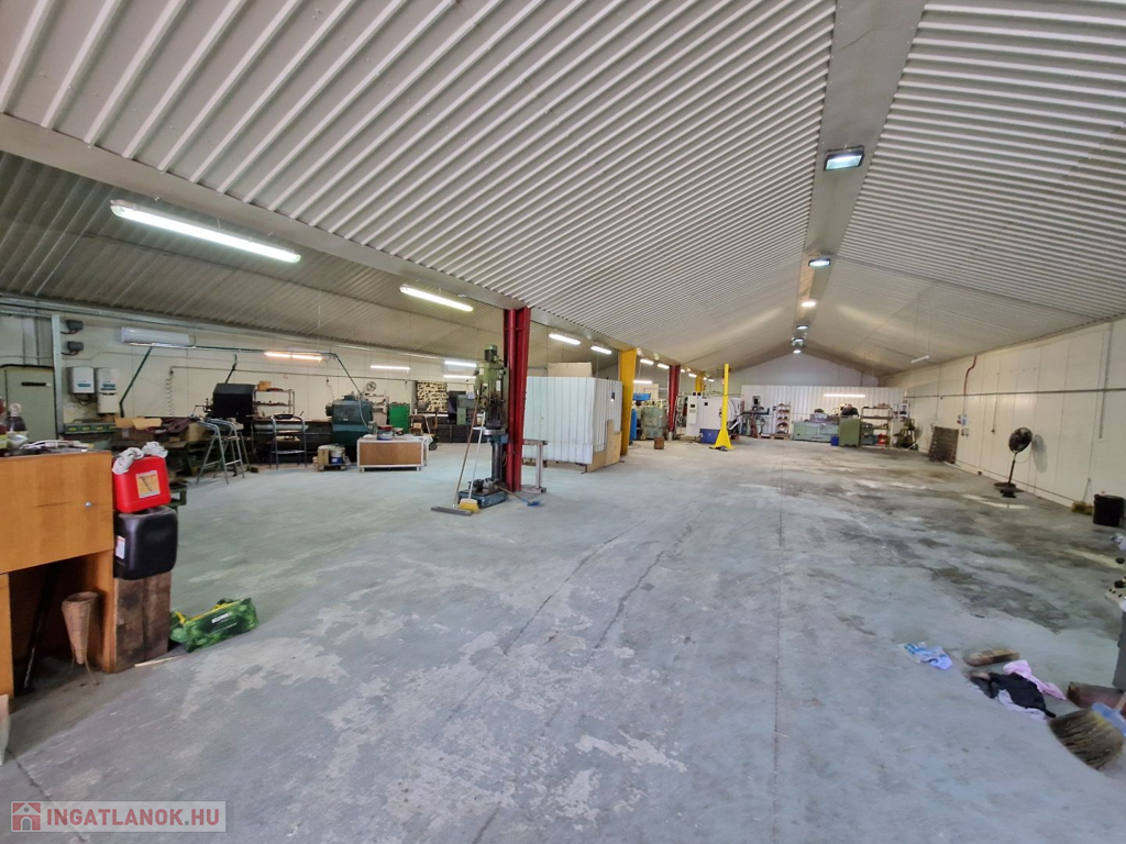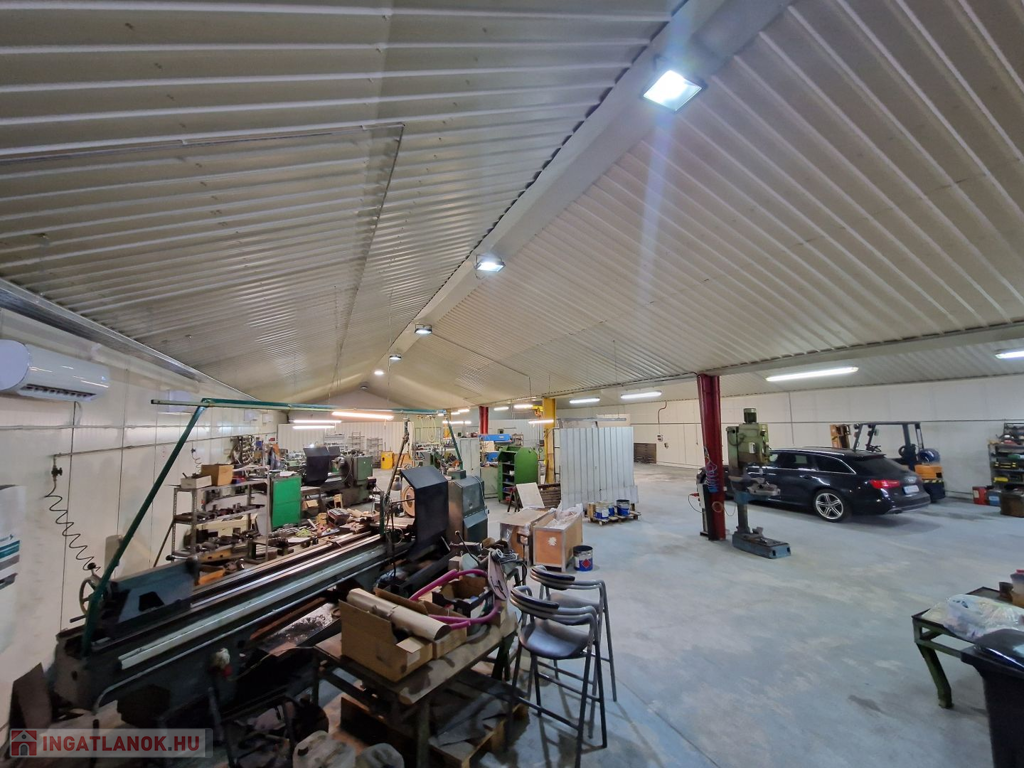 Az üzemcsarnokban pillanatnyilag is üzemel egy esztergályos- forgácsoló gépműhely, tehát alkalmas bármilyen könnyű és nehézipari tevékenységre. A parkolás a műhely előtti szomszédokkal közös zárt udvarban megoldható.