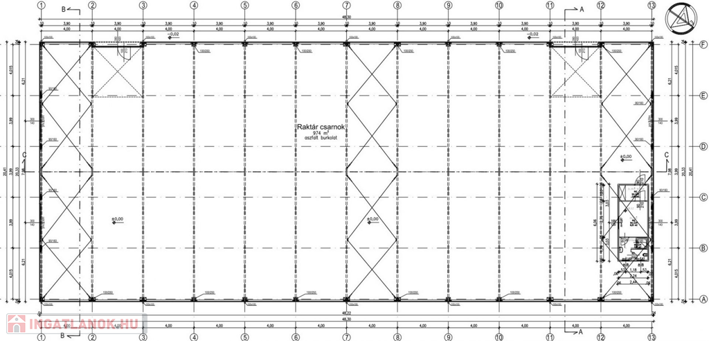 A felépítmény 2020-ban épült, funkciója raktárcsarnok. Az ingatlan magába foglal egy raktárcsarnokot, iroda/szociális részt, valmint egy kültéri tárolásra alkalmas, szilárd burkolatú területet.