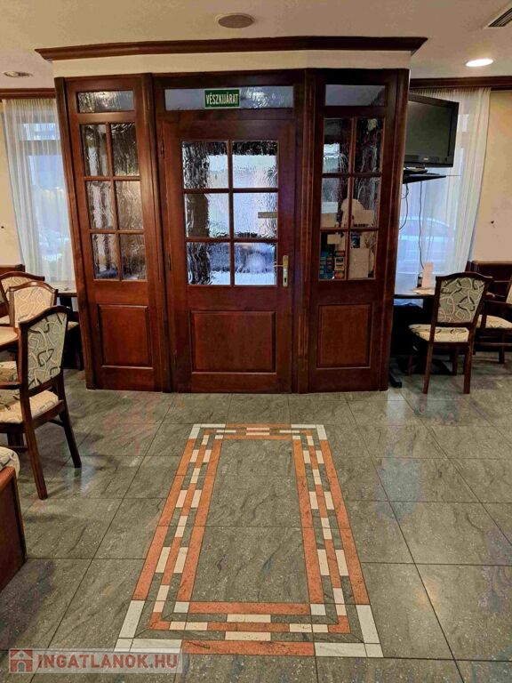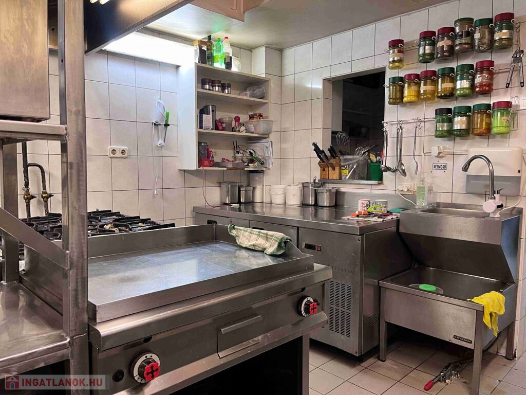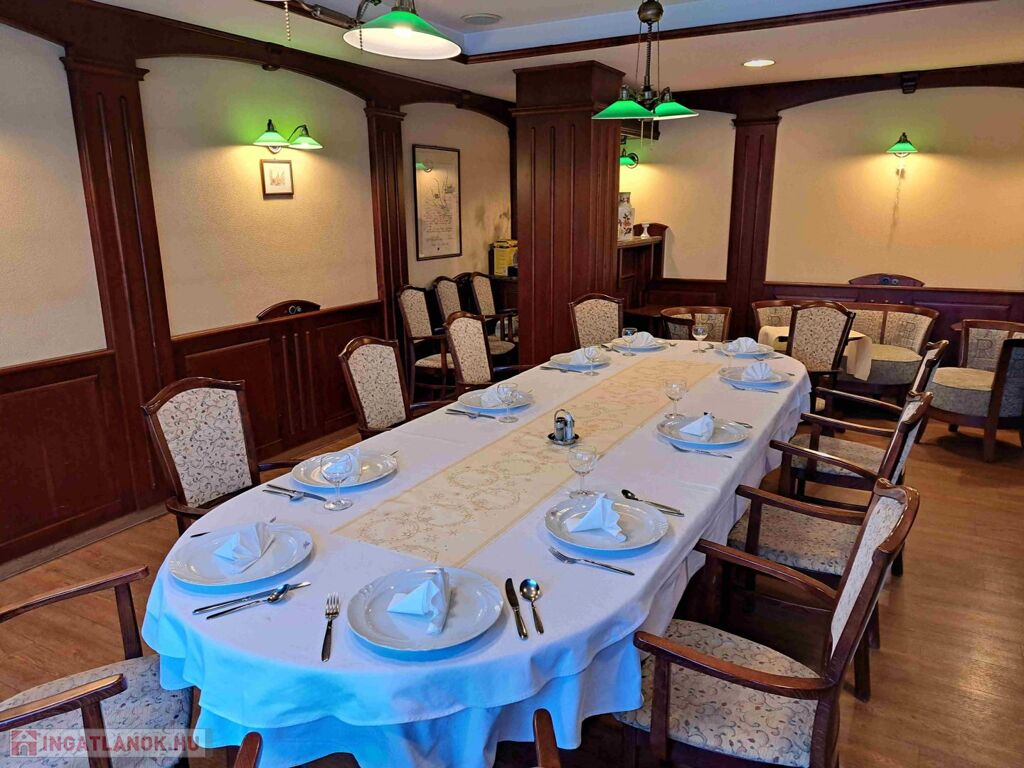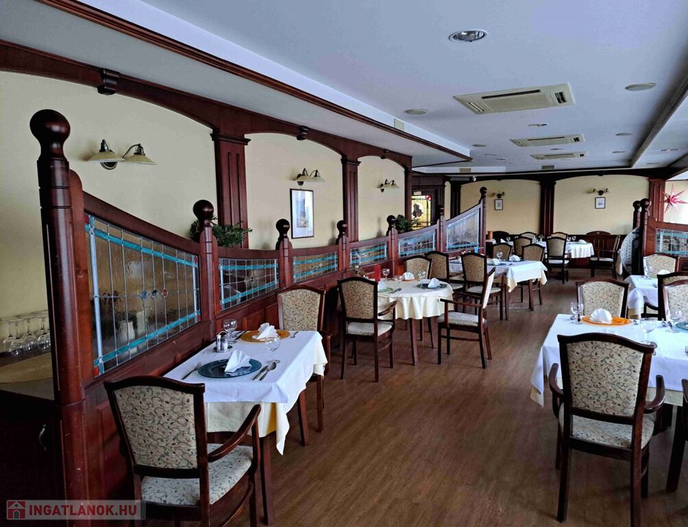 A belső kialakítás és elrendezés nagyon magas szinvonalú., kétoldali nagy üvegfelületekkel. Az eladó-kiszolgáló tér és konyha minden jogszabályi követelményeknek megfelel és fel van szerelve. Rendelkezik teljesen elszeparálható különteremmel ( szivarszobáva ), amihez külön vizesblokk is tartozik. Egyidőben akár 75 fő színvonalas kiszolgálása is lehetséges. Az étteremhez ( üzlethelységhez) tartozik 9 db zár udvari gépkocsibeálló is, ami egy távvezérléses kapu közelíthető meg.