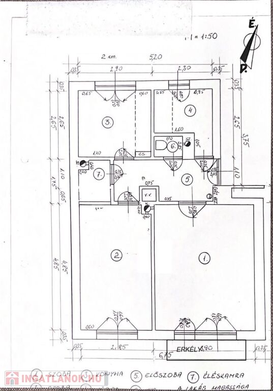 Az előszobából nyílik két külön bejáratú szoba, (a nagyobbik erkélyes), a konyha–étkező, a mosókonyha, a zuhanyzós fürdőszoba kétállású mosdóval és WC-vel, valamint egy külön WC is.