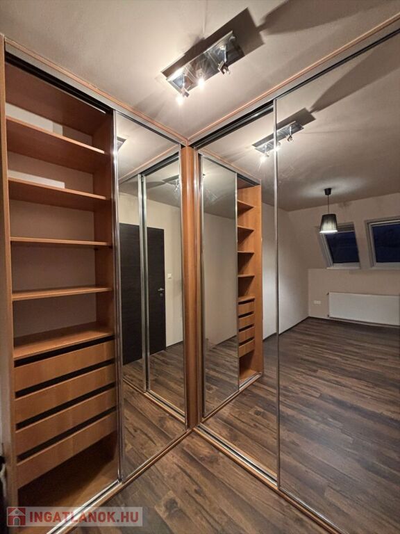 A beépített szekrényeknek köszönhetően rengeteg tárolóhely várja az új tulajdonost.