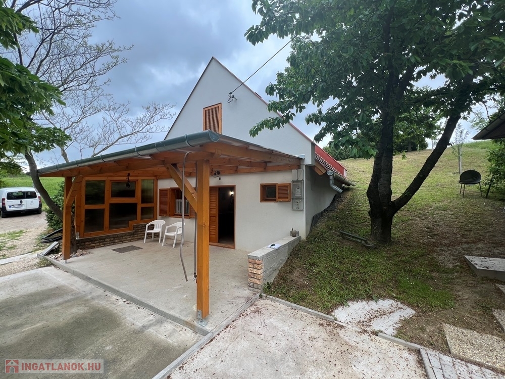 Ravazd rendkívül kedvelt, csendes, festői szépségű természeti környezetében, 3999 m2-es, villannyal (3 x 16 A) ellátott, 32 m UTCAFRONTÚ telken lévő, 51 m2-es kiváló állapotú présház/hétvégi ház/nyaraló/zártkert, 20,92 m2-es borospince kapcsolattal, 17,92 m2-es terasszal és 3,8 m2-es különálló kerti zuhanyzóval, panorámás kilátással eladó.