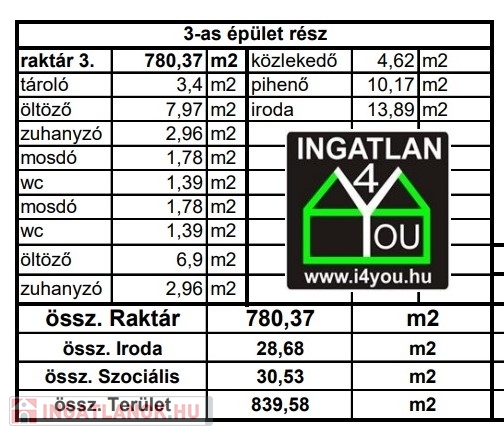 - Raktár csarnok: 780 m2