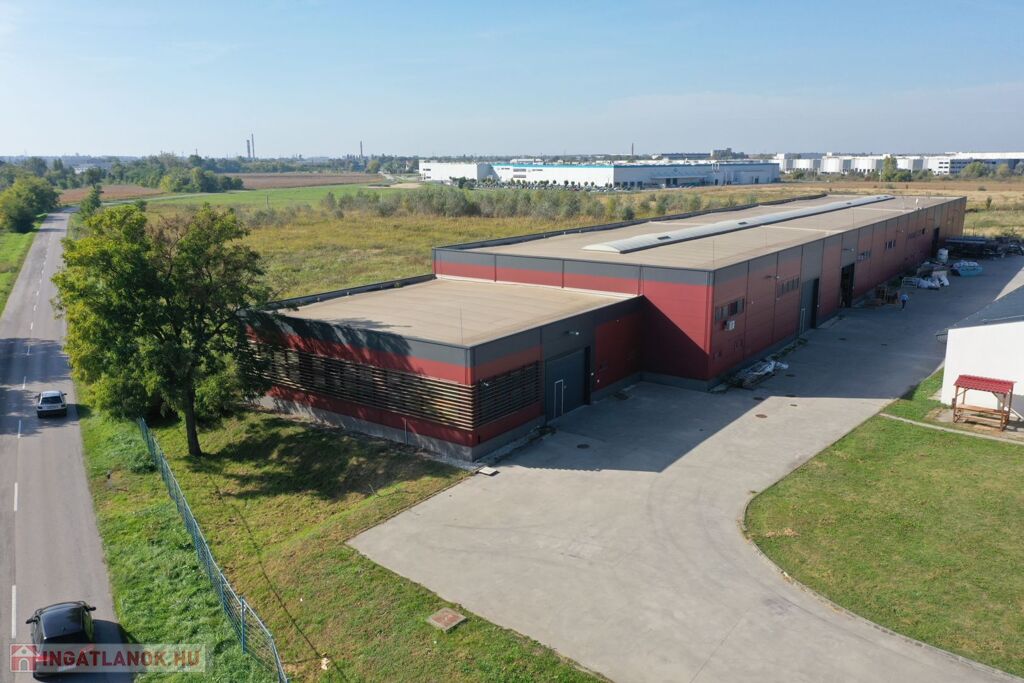 A Győri Ipari Park, jól megközelíthető részén, 2012-ben épült, 839 m2-es (780 m2-es fűthető raktár csarnok, 58 m2-es iroda/szociális felület), gyártó/raktár csarnok eladó.