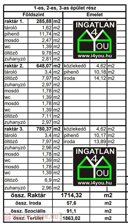 - Raktár csarnok: 1715 m2