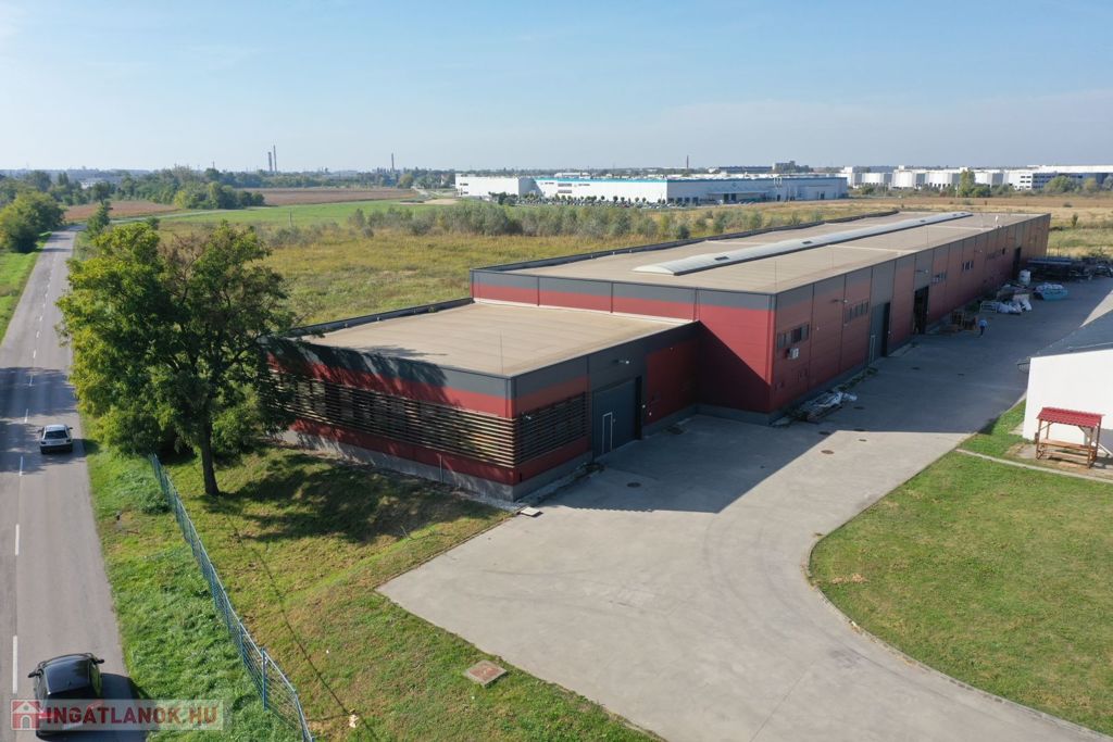 A Győri Ipari Park, jól megközelíthető részén, 2012-ben épült, 1863 m2-es (1714 m2-es fűthető raktár csarnok, 148 m2-es iroda/szociális felület), gyártó/raktár csarnok eladó.