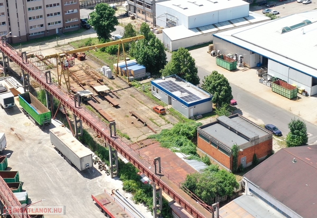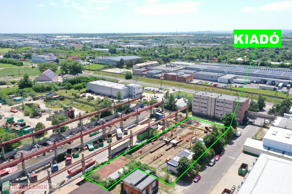 Győrben az ipari park szélén 2280 m2-es nagy teherbírású betonos udvarral rendelkező telephely, 94 m2-es iroda, szociális konténerrel, 90 m2-es műhellyel, ipari daruval (5t), igény esetén acél hajlításhoz, vágáshoz alkalmas gépekkel kiadó.