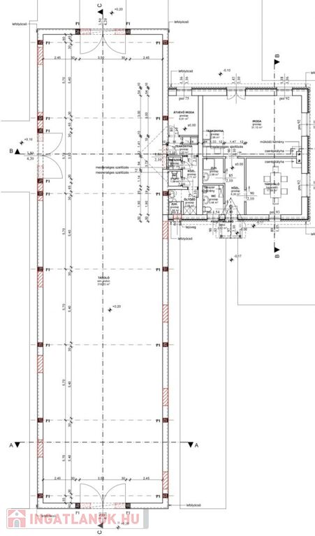 - Iroda és szociális részek: 107 m2