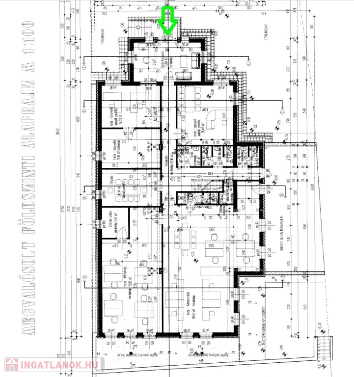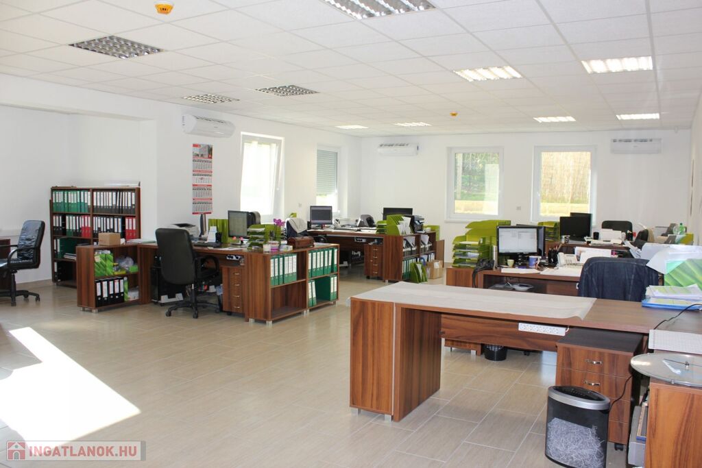 A két szintes ~462 m2 hasznos alapterülettel rendelkező iroda épület, sáv alapra, 30-as tégla falszerkezettel, monolit vasbetongerendás födémmel épült, a homlokzati szigetelés 15 cm-es grafitos Dryvit rendszer, a nyílászárók műanyagból készültek. Az irodaépület földszintjén a recepcoión és a wc és modókon kívül három "normál" méretű, és nagy nagy méretű iroda helyezkedik el. Az alaprajzok és a helyiséglista a fotók között megtalálható. Az emelti részen találhatók az üzemi rész öltözői, zuhanyzói, a kazánház és a konyha-étkező, ami nagyobb meetingek, bemutatók tartására is alkalmas.