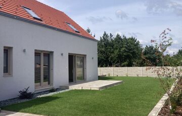 Pannonhalma, központi, csendes utcájában, 470 m2-es telekrészen elhelyezkedő, új építésű 162 m2-es, nappali plusz 3 szoba elrendezésű lakóház 13 m2-es terasszal, 23 m2-es garázzsal eladó.