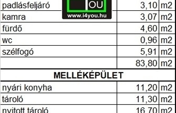 A főépülettől külön áll egy 39 m²-es melléképület, benne nyári konyhával (gáz bevezetve), zárt tárolóval és egy nyitott tárolóval.