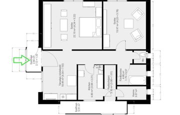 A magasított alapzatra épült házba szélfogón keresztül jutunk, amely a tágas előszobába vezet – ez akár társalgónak is kiváló. Innen egy közlekedőből nyílnak a helyiségek: