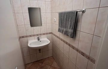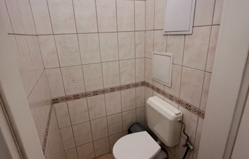 A lépcsőház rendezett, a szomszédos társasházban több bejáratott üzlet működik.